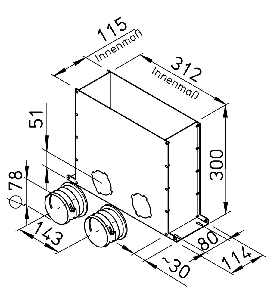 FlexPipe Multi-Boden-Kasten. 2 Stutzen Rund 75 für Bodengitter.Multi-Bodenkasten für Anbindung an max. 2 Rundrohre FRS-R 75. Geeignet für Verguss in der Betondecke, bestehend aus: Bodenkasten für Gitteranschluss 300 x 100 mm in robuster Blechausführung, 2 St. Einzelstutzen (rund) und 1 St. Stutzen-Verschlussdeckel mit Dichtung (rund).