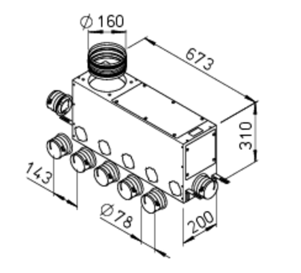 Helios FRS-MVK 5+2-75/160, FlexPipe Multi-Verteilerkasten 7 Einzelstutzen rund 75 2 x Anschluss-DN 160