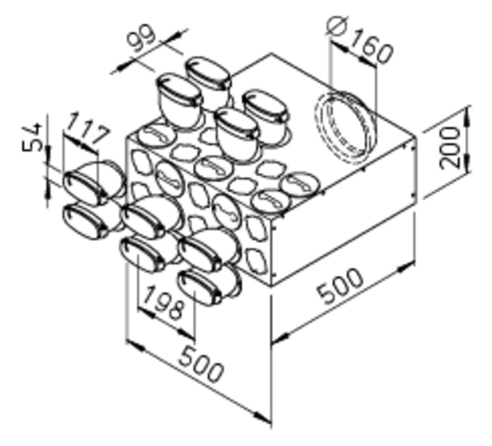 FlexPipe Verteilerkasten. 10 Einzelstutzen Oval 51. Anschluss-DN 160
