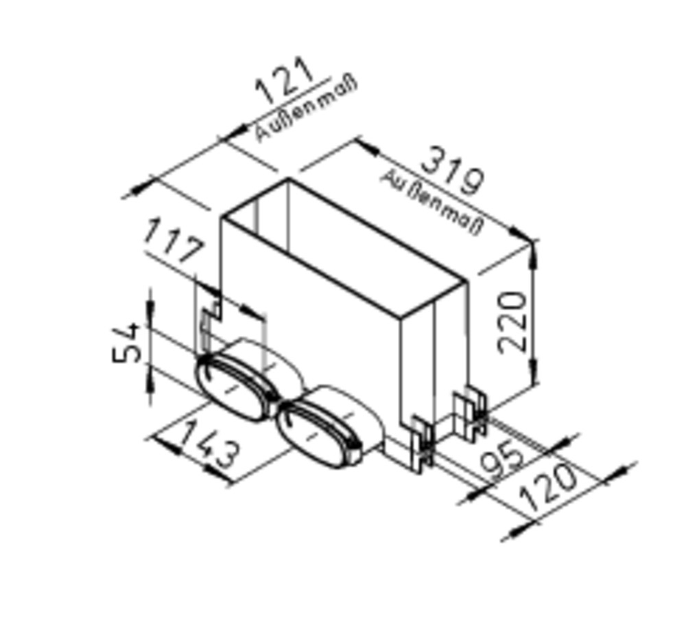 Helios FRS-WBK 2-51, FlexPipe Wand-Boden-Kasten 2 Stutzen Oval 51 für Wand-/Bodengitter 10831295 99502