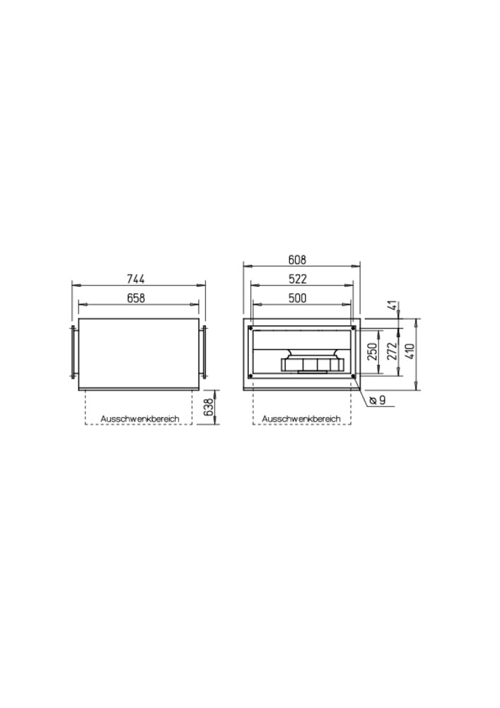 SILENT Kanalventilator EC schallgedämpft, regelbar 1-PH 200-277V 50/60Hz. Radial EC-Kanalventilator schallgedämpft, zur direkten Montage in rechteckiges Kanalsystem, Ventilator-Einheit herausschwenkbar. Gehäuse aus verzinktem Stahlblech mit beidseitig genormten Kanal-Flanschprofilen, raumsparende Bauweise, schallabsorbierende Innenauskleidung mit 50mm starken Mineralfaserplatten hinterlegt. Servicefreundlich durch ausschwenkbare Motor-Laufrad-Einheit. Hochleistungs-Radial-Laufrad mit rückwärts gekrümmten Schaufeln aus Kunststoff und verzinktem Stahl. Vibrationsfreier Lauf durch dynamische Wuchtung. Aerodynamisch optimiert, Einströmung über Düse. Antrieb durch energiesparenden, drehzahlsteuerbaren EC-Außenläufermotor in Schutzart IP44 mit höchstem Wirkungsgrad. Wartungs- und funkstörungsfrei, kugelgelagert. Integrierte elektronische Temperaturüberwachung für EC-Motor und Elektronik. Stufenlose Drehzahlsteuerung mit Potentiometer oder stufenlose Drehzahlregelung mit Universal-Regelsystem EUR-EC. Anschluss über serienmäßiger Klemmenkasten (IP54) an ausgeführtem Kabel montiert.