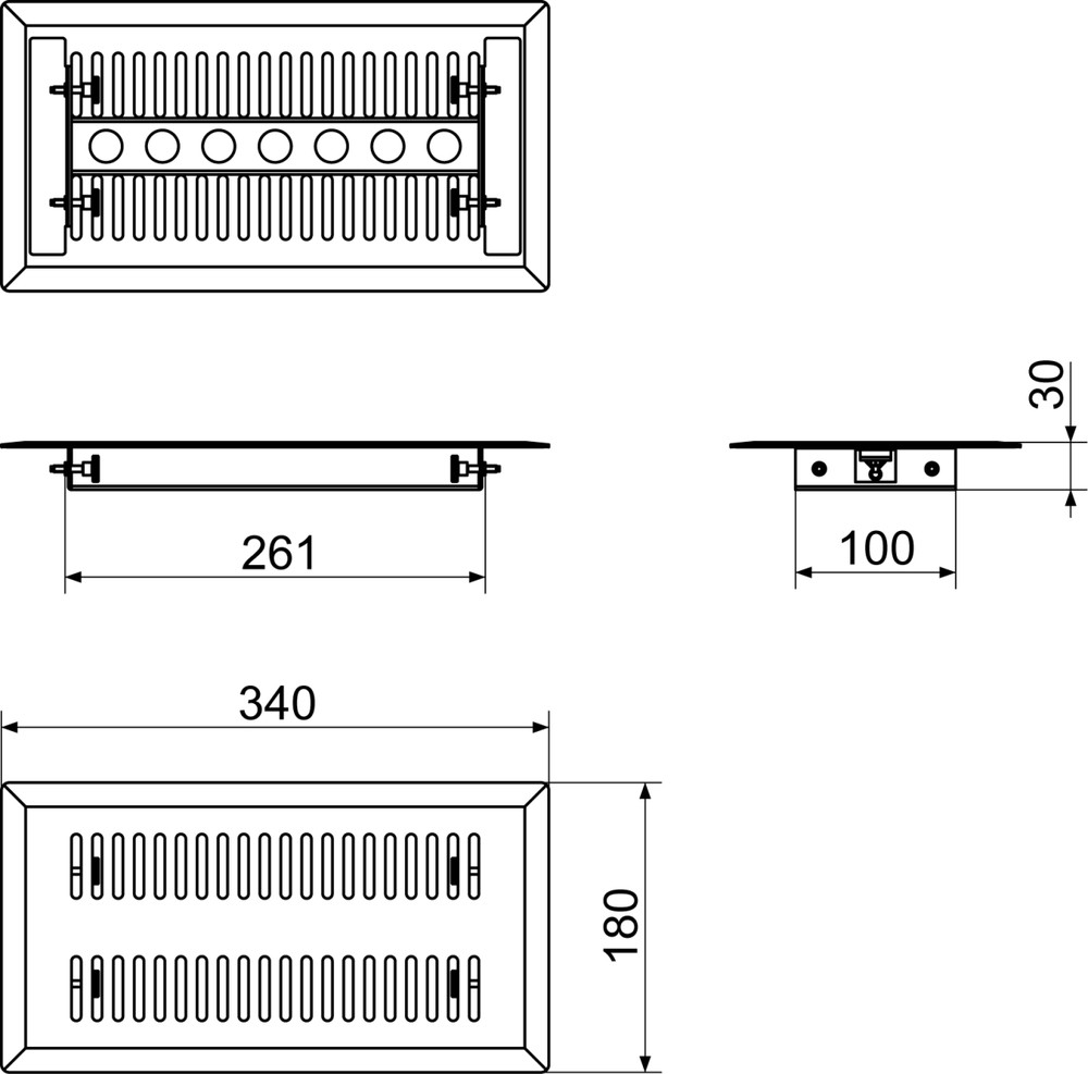 Trittfestes Design-Fußbodengitter passend zum Fußbodenauslass FFS-BA. Das Fußbodengitter aus gebürstetem Edelstahl hat ein modernes Langloch-Design. Der Einbaurahmen ermöglicht eine Ausrichtung am umgebenden Fußbodenbelag. Die Befestigung erfolgt mit Klemmstiften. Lieferumfang: 1 Fußbodengitter, 1 Halterung, 1 DichtungsbandArtikel: FFS-FG, Ausführung: Langloch-Design, Einbauart: mit Einbaurahmen, Befestigung mit Klemmstiften, Material: Edelstahl, gebürstet, Gewicht: 0,954 kg, Breite: 340 mm, Höhe: 180 mm, Tiefe: 30 mm