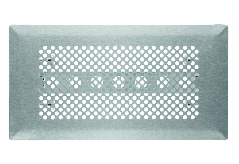 Trittfestes Design-Fußbodengitter passend zum Fußbodenauslass FFS-BA. Das Fußbodengitter aus gebürstetem Edelstahl hat ein modernes Design mit kreisförmigem Lochbild. Der Einbaurahmen ermöglicht eine Ausrichtung am umgebenden Fußbodenbelag. Die Befestigung erfolgt mit Klemmstiften. Lieferumfang: 1 Fußbodengitter, 1 Halterung, 1 DichtungsbandArtikel: FFS-FGR, Ausführung: Design mit kreisförmigem Lochbild, Einbauart: mit Einbaurahmen, Befestigung mit Klemmstiften, Material: Edelstahl, gebürstet, Gewicht: 0,94 kg, Breite: 340 mm, Höhe: 180 mm, Tiefe: 28 mm