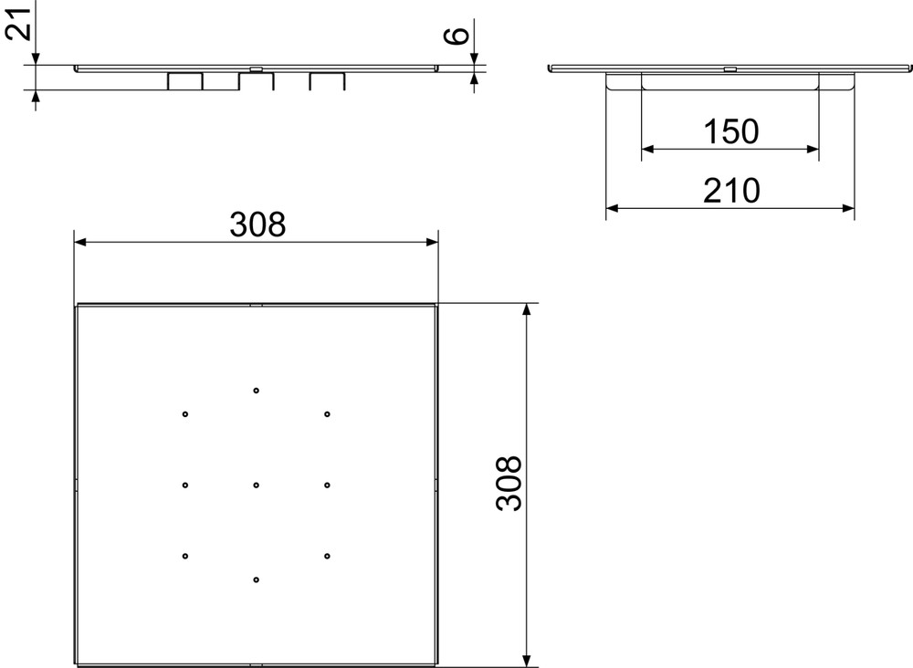 Revisionsdeckel aus Edelstahl zum Einbau in Fußböden als Zugang zum Luftverteiler. Es kann am Fugenverlauf des Fußbodenbelags ausgerichtet werden. Die Winkelschienen sind als Abschluss zum umgebenden Fußbodenbelag vorgesehen. Lieferumfang: 1 Luftverteiler-Abdeckung, 4 WinkelschienenArtikel: FFS-VD, Gewicht: 1,225 kg, Breite: 308 mm, Höhe: 6 mm, Tiefe: 308 mm
