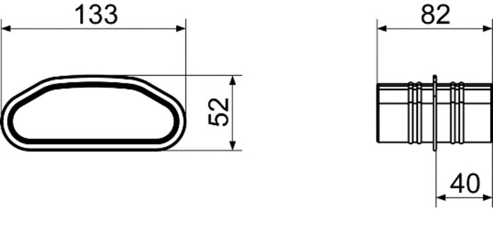 Muffe zum Verbinden von zwei flexiben Flachrohren FFS-R52.Artikel: FFS-M, Gewicht: 0,045 kg, Breite: 133 mm, Höhe: 82 mm, Tiefe: 52 mm