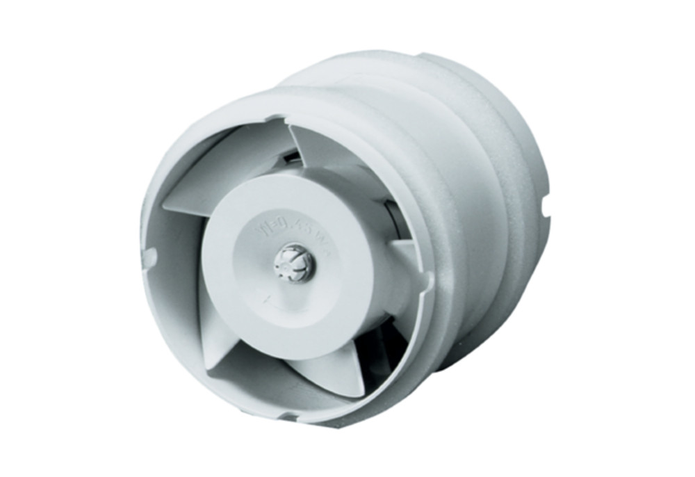 Ausführungen: ECA 11 E: Passend in Rohre DN 100. Mit VDE-GS-Zeichen. Rohreinschubventilator für Einbau in Wickelfalzrohre. Für Be- oder Entlüftung, je nach Einbaulage im Rohr. Gehäuse aus schlagfestem Kunststoff. Schutzklasse II. Farbe verkehrsweiß ähnlich RAL 9016. Berührungsschutz gemäß DIN EN ISO 13857 erforderlich, z. B. durch Schutzgitter SG und Verschlussklappe AP. Schutzgitter und selbsttätige Verschlussklappe als Zubehör. Drehzahlsteuerbar, Ausnahme: ECA 15/2 E. Motor: Robuster Motor mit Kugellager, wartungsfrei. Für Dauerbetrieb geeignet. Thermischer Überlastungsschutz. Durch die Technik des Phasenanschnitts kann im unteren Drehzahlbereich ein physikalisch bedingtes Brummgeräusch auftreten. Montagehinweis: In trockenen Räumen für jede Einbaulage geeignet.Artikel: ECA 11 E, Fördervolumen: 105 m3/h, Drehzahl: 2550 1/min, Drehzahlsteuerbar: ja, Reversierbarkeit: nein, Spannungsart: Wechselstrom, Bemessungsspannung: 230 V, Netzfrequenz: 50 Hz / 60 Hz, Leistungsaufnahme: 13 W, IMax: 0,1 A, Schutzart: IP 45, Netzzuleitung: 3 / 1,5 mm2, Einbauart: Unterputz, Einbaulage: beliebig, Material: Kunststoff, Farbe: verkehrsweiß, ähnlich RAL 9016, Gewicht: 0,5 kg, Nennweite: 100 mm, Breite: 98 mm, Höhe: 98 mm, Tiefe: 109 mm, A: 98 mm, B: 109 mm, Fördermitteltemperatur bei IMax: 40 °C, Schalldruckpegel: 37 dB(A) / Abstand 3 m, Freifeldbedingungen