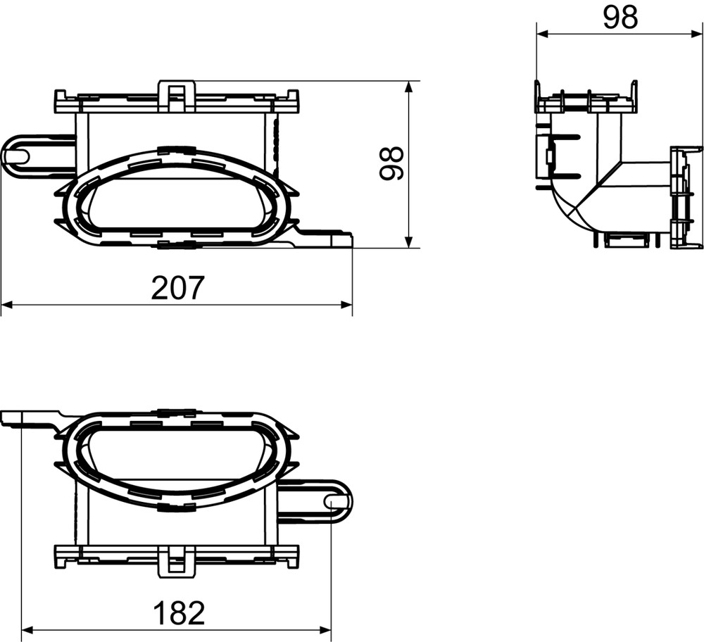 Kanalbogen 90° aus Kunststoff. Ausführung hoch. Mit Anschlussmöglichkeit für flexibles Flachrohr. Lieferumfang: 1 Kanalbogen, 2 einzelne Adapter Rohrbefestigungen (FFS-RA)Artikel: FFS-BV, Volumenstrom: 15 m3/h / 30 m3/h / 45 m3/h / bei 1,1 Pa / 4,4 Pa, 10,0 Pa, Gewicht: 0,2 kg, Breite: 207 mm, Höhe: 98 mm, Tiefe: 98 mm