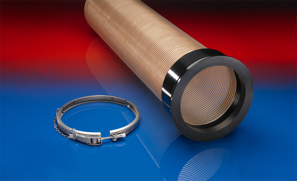 • Bei vertikalem Einsatz müssen Flansch und Schlauch mit zusätzlichen Befestigungen gesichert werden