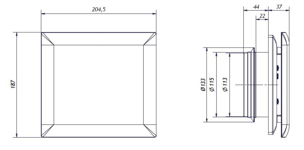 Abluftventil BEHT-Q 15/65-125J mit eckiger Frontplatte Abluftventil mit variablem Volumen- strom in Abhängigkeit der relativen Feuchte -selbsttätig regelnd -Polystyren (PS), weiss -Anschlussstutzen NW 125 -Gummilippendichtung Fabrikat: S&P Deutschland GmbH Typ: BEHT-Q 15/65-125J Artikel-Nr.: L012133701