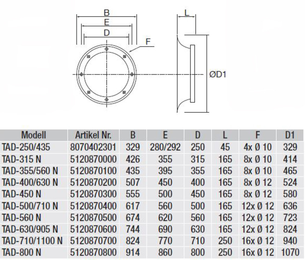 Ansaugdüse mit Schutzgitter TAD-315 N -Aus Stahlblech lackiert, NW 315 -Mit Anschlussflansch Fabrikat: S&P Deutschland GmbH Typ: TAD-315 N Artikel-Nr.: 5120870000