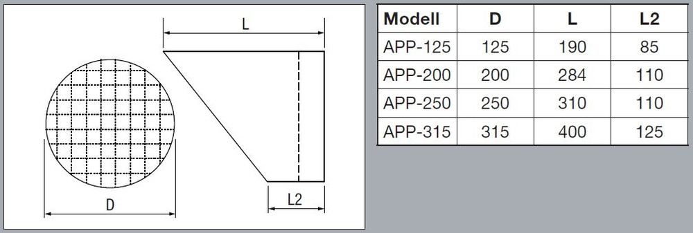 Ausblasstutzen APP-250-N -Ausblasstutzen mit Vogelschutzgitter -Material Polypropylen Fabrikat: S&P Deutschland GmbH Typ: APP-250-N Artikel-Nr.: 5130316800