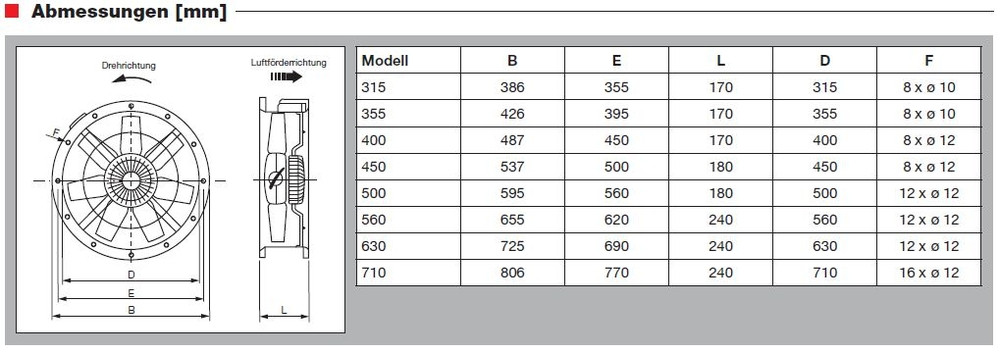 Axial-Rohrventilator TCBT/4-315/H -EEXEII T3 zur bestimmungsgemäßen Verwendung in explosionsgefährdeten Bereichen. EG-Baumusterprüfbescheinigung: gemäß Richtlinie 94/9/EG (ATEX) II 2 G EEx e II T3 -Stahlblechgehäuse mit Epoxid- Polyester-Beschichtung -Verbindungsflansche gemäß ISO 1940 -Flügel aus Aluminiumdruckguss -Statisch und dynamisch ausgewuchtet nach ISO 1940 -Klemmenkasten am Gehäuse angebaut -Asynchron Käfigläufermotor aus Aluminiumdruckguss, 4-polig -Schutzart IP 55 -Wärmeklasse F -Motorbemessung Dauerbetrieb S1 -Einsatzbereich von -20GradC bis +55GradC -Zündschutzart e: Erhöhte Sicherheit -Für Zone 1 und 2 -Gerätegruppe II, Kategorie 2G -Temperaturklasse T1 - T3 -Geschlossene Kugellager - wartungsfrei -Eintourig -Motorschutz in Verbindung mit Motor- schutzschalter MS-EX Technische Daten: Volumenstrom: 2.340 m3/h (freiblasend) Nennspannung: 3ph. 230/400 V/50Hz Drehzahl: 1.300 1/min Max. Leistungsaufnahme: 150 W Motorstrom: 0,3 A Schallleistungspegel LWA: 69 dB(A) Gewicht: 11,0 kg Fabrikat: S&P Deutschland GmbH Typ: TCBT/4-315/H -EEXEII T3 Artikel-Nr.: 5604549500