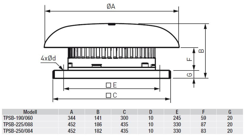 S&P Dachventilator TPSB/2-250/084 N8 horizontal, 230V