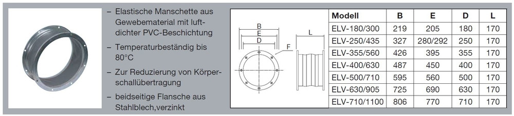 Elastische Verbindung ELV-180/300 Für Ventilatoren, NW 180 -Zur Körperschall-Reduzierung -Beidseitiger Verbindungs-Flansch aus Stahlblech, verzinkt -Länge L=170mm Fabrikat: S&P Deutschland GmbH Typ: ELV-180/300 Artikel-Nr.: 8070404181