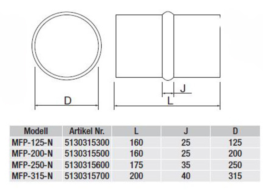 Elastische Verbindung MFP-125-N -Zur Körperschall-Reduzierung -Für Saugseite/Druckseite, NW 125 -Material Polypropylen Fabrikat: S&P Deutschland GmbH Typ: MFP-125-N Artikel-Nr.: 5130315300