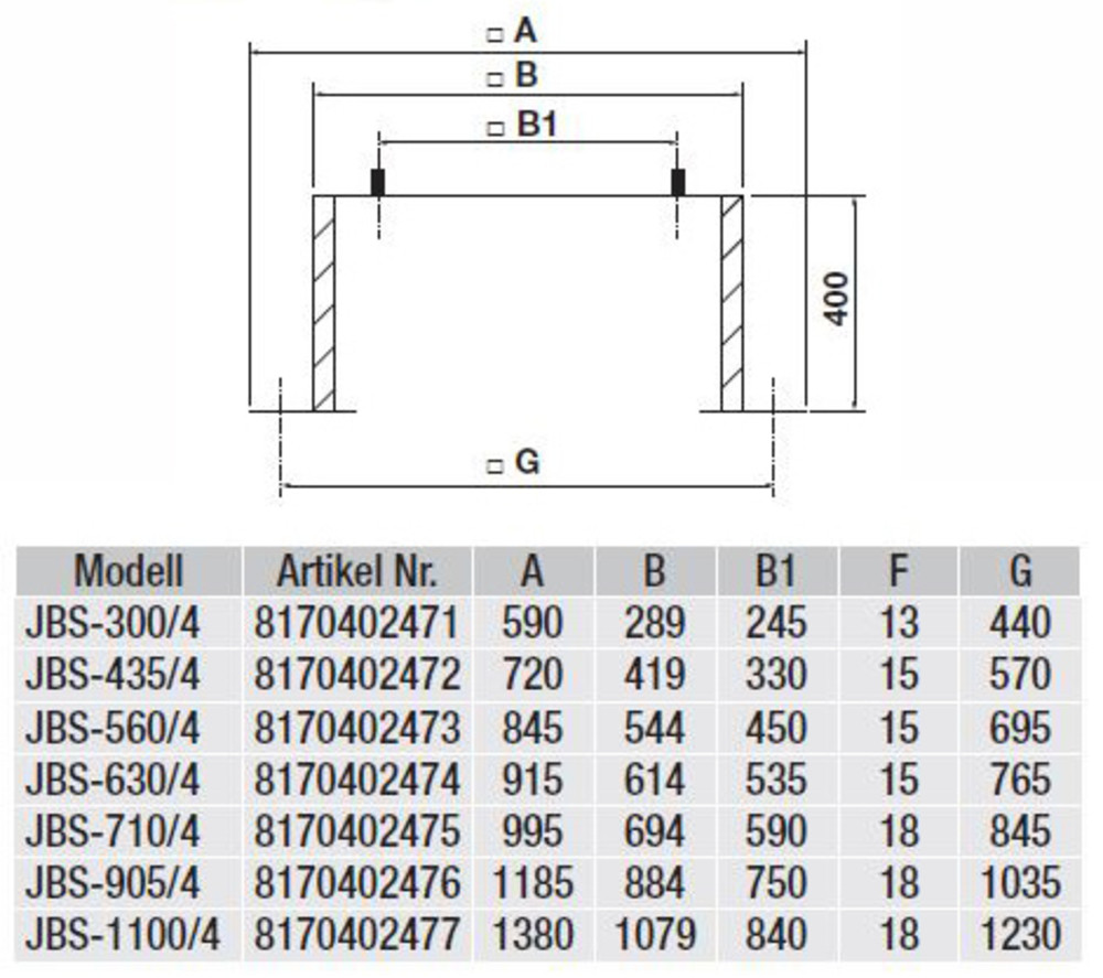 Flachdachsockel JBS-1100 -Flachdachsockel aus Stahlblech, verzinkt, -Thermische/akustische Isolierung -Komplett mit Schrauben und Dichtung Abmessungen: L=1080mm/B=1080mm/H=400mm Fabrikat: S&P Deutschland GmbH Typ: JBS-1100/4 Artikel-Nr.: 8170402477