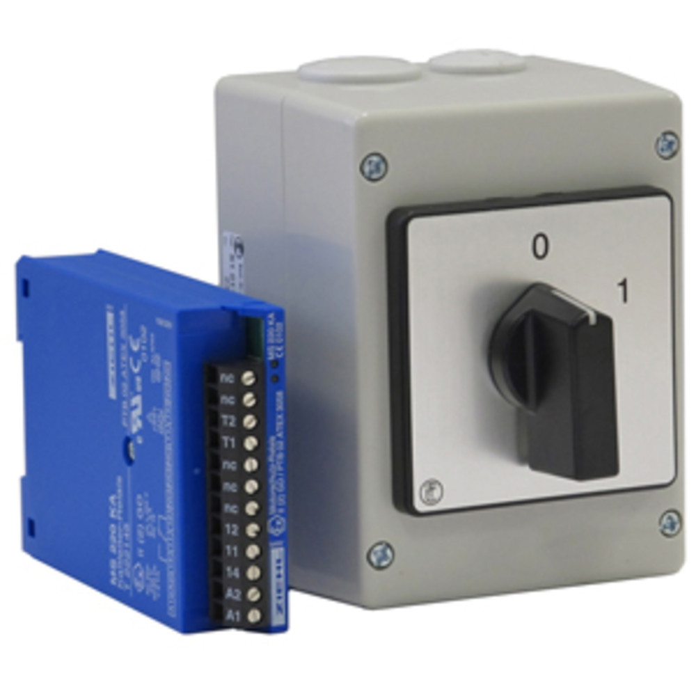 Motorschutzkombination MSK-EX bestehend aus: 1 St. Motorschutzschalter MSD-2 1 St. Kaltleiter-Relais MS220KA Schalt- und Schutzkombination für Drehstrommotoren mit separat zum Klemmenbrett geführtem Kaltleiter. -Drehstrom 3ph. 400V / 50Hz -Belastbar bis 25 A -Schutzart IP 54 Im Lieferumfang enthalten: 1 x Motorschutzschalter MSD-2 Montage: Aufputz, IP 54 (im nicht explosionsgefährdeten Bereicht) 1 x Kaltleiter-Relais MS 220 Ka Montage: Hutschine, IP 20 (im nicht explosionsgefährdeten Bereich) Fabrikat: S&P Deutschland GmbH Typ: MSK-Ex Artikel-Nr.: 9000000150