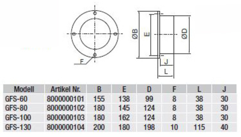 Gegenflansch GFS-100 -Für Radialventilatoren CBT-100 N -Saugseite, NW 125 -Aus Stahlblech, verzinkt -Länge L=38mm Fabrikat: S&P Deutschland GmbH Typ: 8000000103 Artikel-Nr.: 8001307005