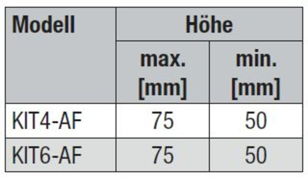 Höhen verstellbare Füße KIT4 -AF Zur Höheneinstellung zwischen 50 und 75 mm - 4 Stück Fabrikat: S&P Deutschland GmbH Typ: KIT 4 AF Artikel-Nr.: 5407029800