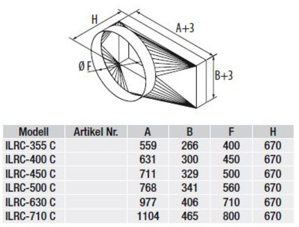 Übergangsstück asymmetrisch ILRC-500 C -für Kanalventilatoren Serie ILHB/T -Übergangsstück eckig auf rund DN560 zum Anschluss an Normrohre -asymmetrisch -Aus Stahlblech, verzinkt Fabrikat: S&P Deutschland GmbH Typ: ILRC-500 C Artikel-Nr.: 128000016