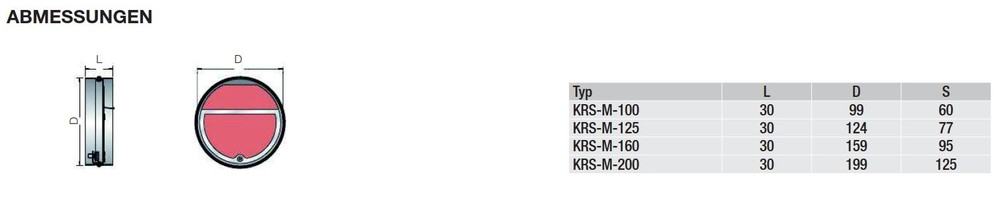 Kaltrauchsperre, DN200 KRS-M-200 Kaltrauchsperre zum Einbau bzw. zur Nachrüstung in Zu- und Abluftanlagen. Verhindert Kaltrauchübertragung und funktioniert energieunabhängig. Metallkörper mit Silikonmembrane und Einschubdichtung -Temperaturbeständigkeit der Membrane bis 260 GradC -öffnet bei 15 Pa Druckdifferenz -entgegen dem Luftstrom undurchlässig Fabrikat: S&P Deutschland GmbH Typ: KRS-M-200 Artikel-Nr.: 8020958008