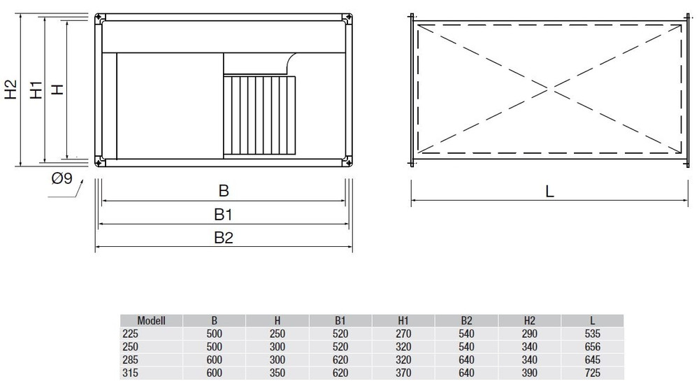 Kanalventilator ILT/4-315 Ex Kanalventilator mit vorwärts gekrümmten Radiallaufrädern zur bestimmungsgemäßen Verwendung in explosionsgefährdeten Bereichen. EG-Baumusterprüfbescheinigungen gemäß Richtline 94/9/EG (ATEX) II 2 G EEx e II T3 -Gehäuse aus Stahlblech, verzinkt -Mit genormten Kanalflansch-Profilen -Leicht abnehmbare Revisionsabdeckung -Zusätzlicher Erdungsanschluss auf der Gehäuseoberseite -Radial-Laufrad, vorwärts gekrümmt -Stahlblech, verzinkt -Statisch und dynamisch ausgewuchtet nach ISO 1940 -Drehstrommotor, 4-polig -Asynchron Käfigläufermotor aus Aluminiumdruckguss -Wärmeklasse F -Schutzart IP 55 -Zulässige Fördermitteltemperatur: -20GradC bis +55GradC -Zündschutzart e: Erhöhte Sicherheit -Für Zone 1 und 2 -Temperaturklassen T1 bis T3 -Motorbemessung Dauerbetrieb S1 -Geschlossene Kugellager - wartungsfrei -Separater Klemmenkasten -Drehzahlsteuerbar ausschließlich mittels 5-Stufen-Transformator RMT oder Frequenzumrichter FUK (+MSK-EX) zulässig -Mit Kaltleiter (PTC) ausgestattet, die Anschlüsse sind zum Klemmenbrett geführt -Allpolig wirksamer Motorschutz in Verbindung mit Motorschutzschalter MSK-Ex Technische Daten: Volumenstrom: 4.000 m3/h frei saugend/blasend Nennspannung: 3ph. 400 V/50Hz Drehzahl: 1.370 1/min Max. Leistungsaufnahme: 2.300 W Motorstrom: 4,9 A Schallleistungspegel LWA: 73 dB(A) (5-Stufen-transformator) Schallleistungspegel LWA: 69 dB(A) (Frequenzumrichter) Gewicht: 42 kg Fabrikat: S&P Deutschland GmbH Typ: ILT/4-315 Ex Artikel-Nr.: 5132926400