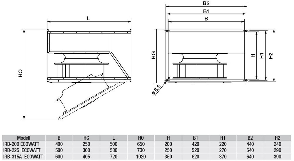 Kanalventilator IRB-225 ECOWATT mit EC-Technologie -Gehäuse aus Stahlblech, verzinkt -Mit genormten Kanalflansch-Profilen -Motor/ Laufrad-Einheit zu Reinigungs- und Wartungsarbeiten ausschwenkbar -Separater Klemmkasten (IP55) mit Anschlusskabel -Laufrad aus Kunststoff (Polyamid) -Radiallaufrad, rückwärts gekrümmt -Statisch und dynamisch ausgewuchtet nach ISO 1940 -EC-Motoren elektronisch kommutiert -Schutzart IP 44 -Wärmeklasse B -Motorbemessung Dauerbetrieb S1 -Geschlossene Kugellager - wartungsfrei -100Prozent drehzahlregelbar -Integriertes Drehzahlpotentiometer -Signaleingang 0-10 V -Ausgang 10 V Technische Daten: Volumenstrom: 2.140 m3/h (freiblasend) Nennspannung: 1ph. 230 V/50Hz Drehzahl: 2.320 1/min Max. Leistungsaufnahme: 345 W Motorstrom: 1,1 A Max. Fördermitteltemperatur: -20/40 GradC Schalldruckpegel LPA (1,5m): 56 dB(A) (Abstrahlung) Gewicht: 22,0 kg Fabrikat: S&P Deutschland GmbH Typ: IRB-225 ECOWATT Artikel-Nr.: 5132930600
