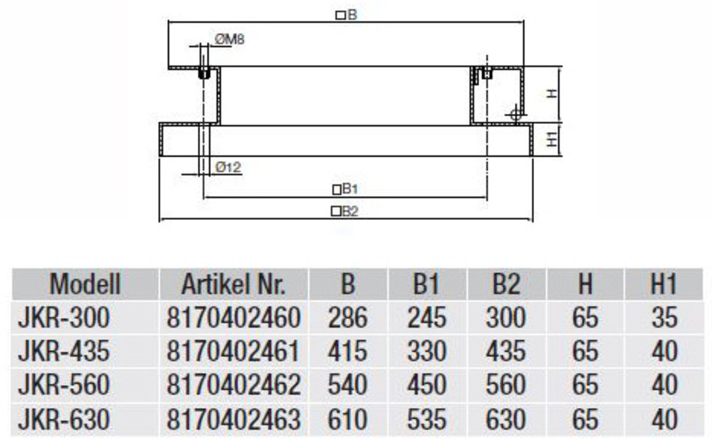Kipprahmen JKR-300-N Zur Kombination mit Dachsockel Kipprahmen zur Montage zwischen Dachsockel und Dachventilator. Zur Revision und Reinigung von Laufrad und Einströmdüse. -Stahlblech, verzinkt -Komplett mit Schrauben, Dichtmaterial und Stützstange nach BGV Passend zu: -Flachdachsockel JBS -Schrägdachsockel JBS-S -Sockelschalldämpfer JAA Fabrikat: S&P Deutschland GmbH Typ: JKR-300-N Artikel-Nr.: 8170402544