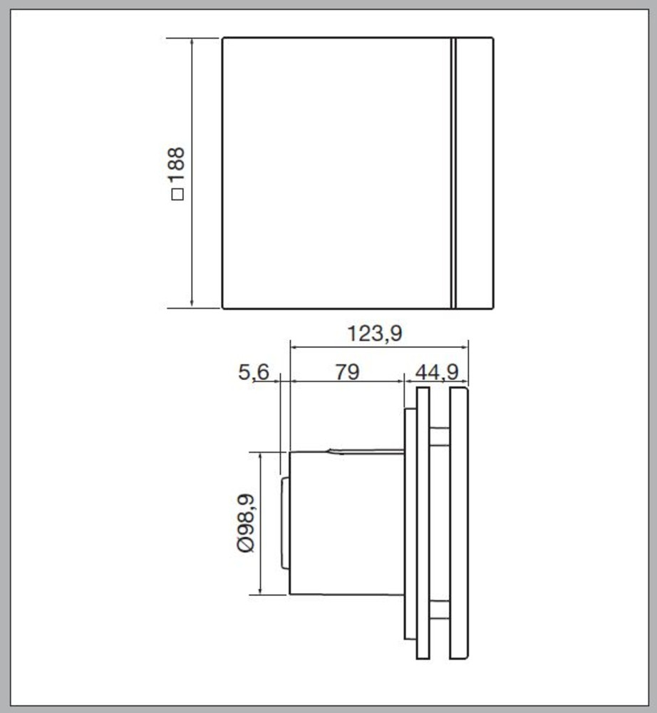 Kleinraum-Ventilator SILENT-100 DESIGN CZ -Gehäuse und Flügel aus schlagfestem Kunststoff, weiß -Elegante Frontblende -LED-Betriebsleuchte -Rückluftsperre, druckseitig -Elektrischer Anschluss Unterputz -Zum Einbau in Rohre oder Schächte NW 100 -Wechselstrommotor -Akustisch entkoppelt -Thermischer Überlastungsschutz -Schutzklasse II -Kugellager - wartungsfrei -Schutzart IP 45 Technische Daten: Volumenstrom: 80 m3/h freiblasend Drehzahl 2.100 1/min Max. Fördermittel- temperatur: 40 GradC Nennspannung: 1ph. 230 V/50Hz Max. Leistungsaufnahme: 8 W Motorstrom: 0,07 A Erforderliche Zuleitung: 2 x 1,5mm2 Schalldruckpegel LPA 3m: 26,5 dB(A) Gewicht: 0,65 kg Fabrikat: S&P Deutschland GmbH Typ: SILENT-100 DESIGN CZ Artikel-Nr.: 5210603100