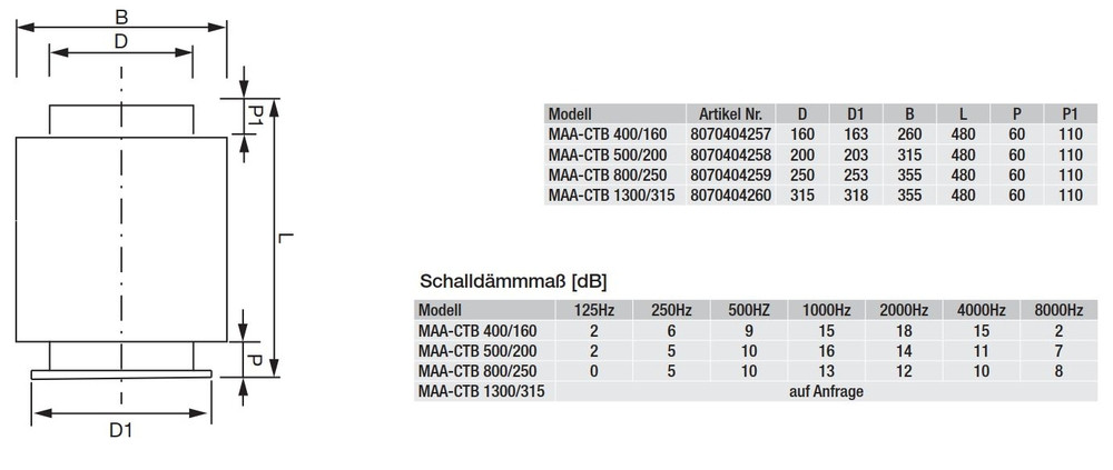 Rohrschalldämpfer MAA-CTB 1300/315 Rohrschalldämpfer mit zwei runden Anschlussstutzen. Einseitig mit Steckverbindung Anschluss Muffenmaß. Einseitig mit Flanschverbindung. -Schalldämpfer aus Stahlblech, verzinkt, -Länge 480 mm -einseitig Anschlussstutzen rund mit Muffenmaß -einseitig Flanschanschluss rund Fabrikat: S&P Deutschland GmbH Typ: MAA-CTB 1300/315 Artikel-Nr.: 8070404260