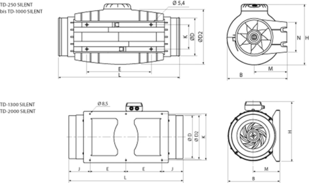 Auf Grund der extrem niedrigen Schallemissionen des TD-SILENT können bei Verwendung von Phasenanschnitts-Reglern evtl. Brummgeräusche auftreten (siehe ALLGEMEINE PRODUKT-INFORMATIONEN) die intensiver wahrgenommen werden als bei herkömmlichen Ventilatoren.