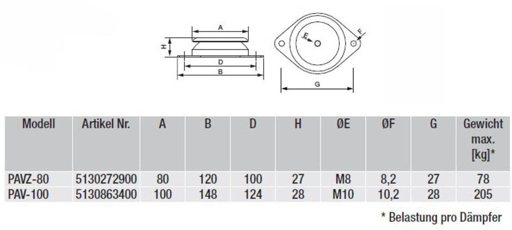 Schwingungsdämpfer PAVZ 80 Satz Schwingungsdämpfer für Druckbelastung (4 Stück). -Gewicht maximal 78 kg Fabrikat: S&P Deutschland GmbH Typ: PAVZ 80 Artikel-Nr.: 5130272900