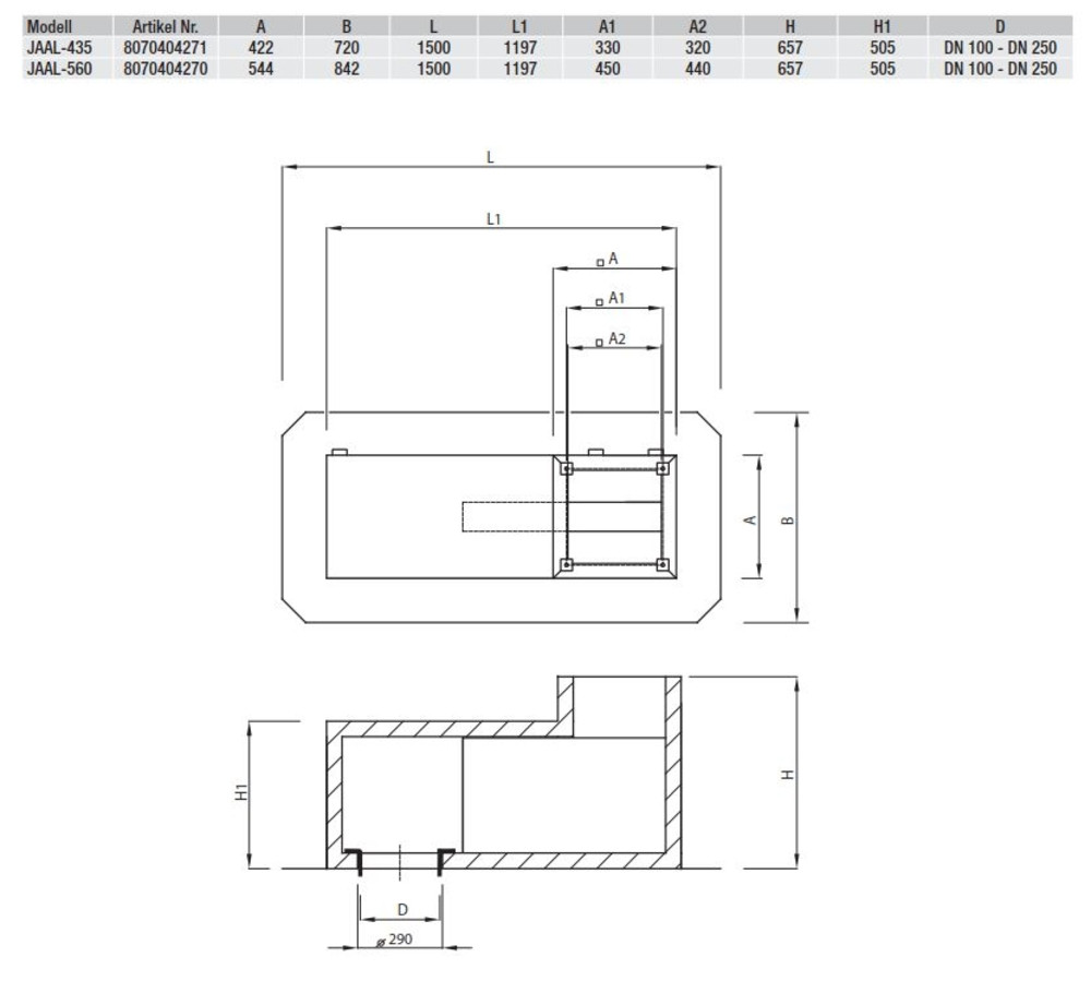JAAL-300 Sockelschalldämpfer, Anschluss unten -Gehäuse aus verz. Stahlblech Fabrikat: S&P Deutschland GmbH Typ: JAAL-300 Artikel-Nr.: L012470096