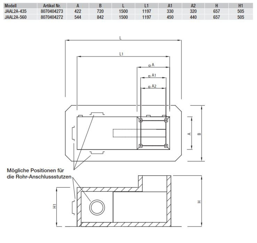 JAAL2A-560 Sockelschalldämpfer, Anschlussstutzen -Gehäuse aus verz. Stahlblech Fabrikat: S&P Deutschland GmbH Typ: JAAL2A-560 Artikel-Nr.: 8070404272