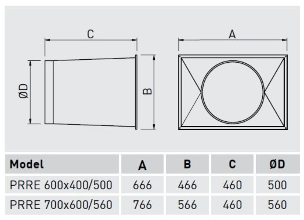 S&P Übergangsstutzen PRRE 700X600/560, 700x600mm/d560mm