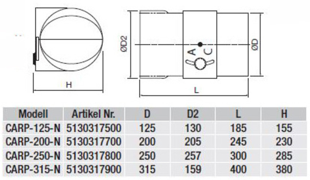 S&P Verschlussklappe CARP-125-N, handverstellbar
