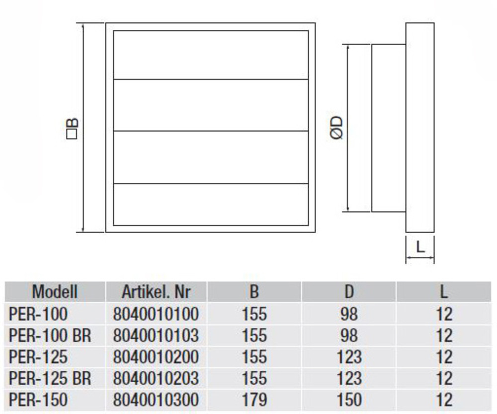 Verschlußklappe PER-150 -Außenwand-Abschluß, selbsttätig -Aus wärmebeständigem Kunststoff, weiß Fabrikat: S&P Deutschland GmbH Typ: PER-150 Artikel-Nr.: 8040010300