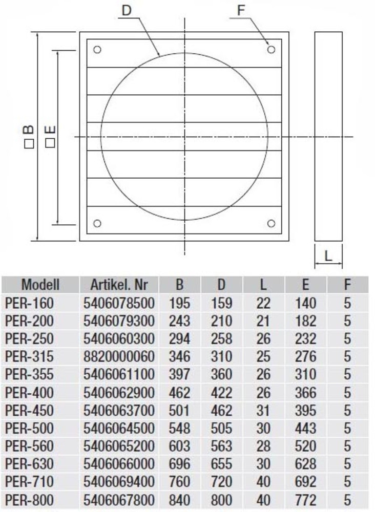 Verschlussklappe PER-315 -Außenwand-Abschluss, selbsttätig -Aus wärmebeständigem Kunststoff, grau Fabrikat: S&P Deutschland GmbH Typ: PER-315 Artikel-Nr.: 8820000060