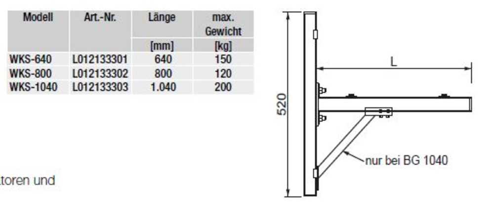 WKS-1040 Wandkonsolenset, verzinkt, VPE 2 Stück Schienen-Konsole 38/40-2,00mm, kaltgewalzter Stahl der Güte DD11, Stückverzinkt nach DIN ISO 1461, stabile Grundplatte mit quer- und längs- gerichteten Langlöchern zur Höhen- regulierung, Kragarm mit durchgängigen Montageschlitz und systemgerechten Rund- und Langlöchern am Schienenrücken. Auslegung entsprechend den statischen Erfordernissen unter Berücksichtigung der Herstellerunterlagen. Wandkonsolen-Länge 1040 mm Fabrikat: S&P Deutschland GmbH Typ: WKS-1040 Artikel-Nr.: L012133303