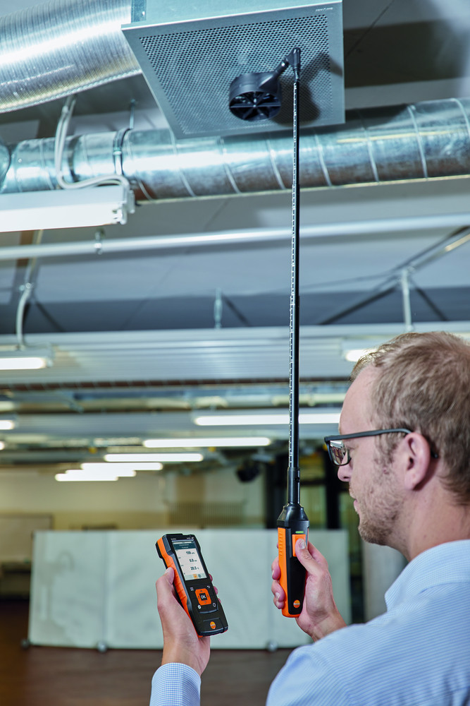 Komfortabel im Lüftungskanal und an Deckenauslässen messen: Das Teleskop ist ausziehbar bis zu 1 Meter Länge, verfügt über eine gut lesbare Skalierung und wird mit einem 90° Winkel geliefert. Stecken Sie das Teleskop mithilfe des Handgriff-Adapters auf Strömungssonden mit universellem Bluetooth- oder Kabel-Handgriff.
