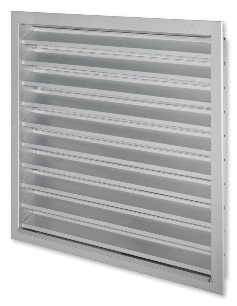 Wetterschutzgitter in rechteckiger Bauform zum Schutz vor direkt eindringendem Regen sowie Laub und Vögeln durch Außenluft- und Fortluftöffnungen. Wetter- und Schallschutz bei geringen Bautiefe. Einbaufertige Komponente, bestehend aus Frontrahmen, regenabweisend und strömungsgünstig geformten Lamellen und rückseitigem Vogelschutzgitter. Einfügungsdämpfung gemessen nach EN ISO 7235.