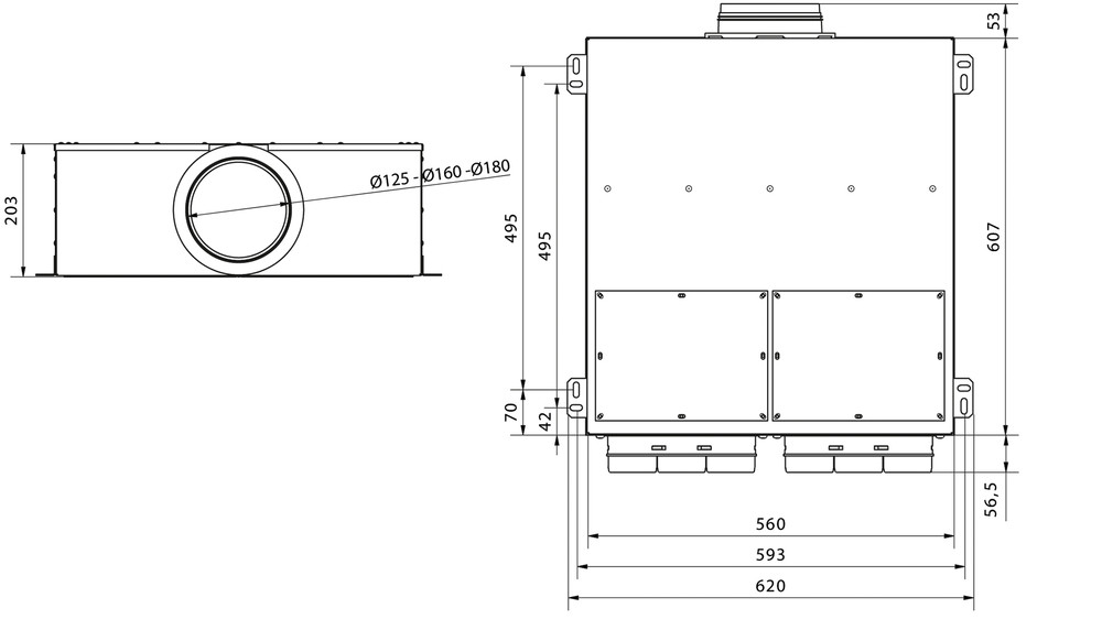airleben Uniflexplus+ Stahlblech-Luftverteilkasten VK NW 160, Größe L, KWL-Rohranschlüsse 18 x NW 63mm 11386542 99597