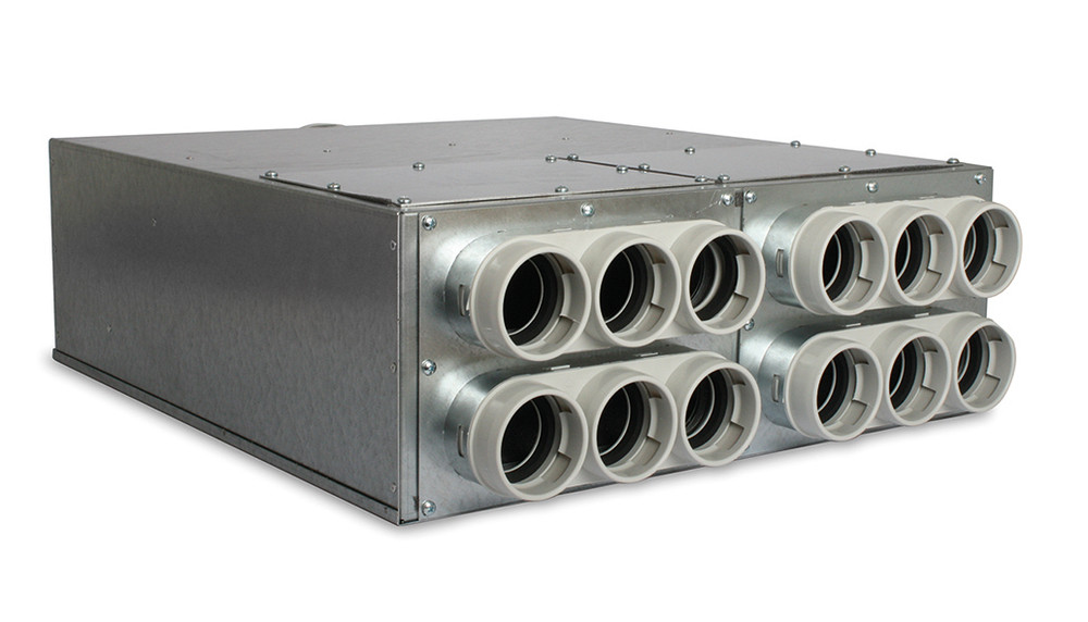 airleben Uniflexplus+ Stahlblech-Luftverteiler VK NW 160, Größe S, KWL-Rohranschlüsse 12 x NW 63mm