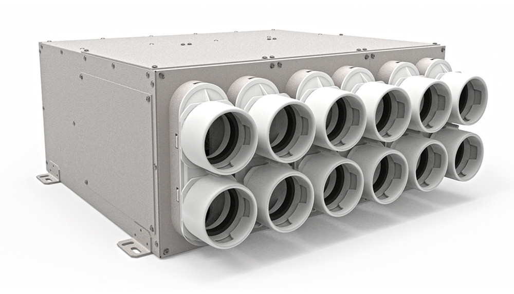 airleben Uniflexplus+ Stahlblech-Luftverteilkasten VK NW 125, Größe L, KWL-Rohranschlüsse 12 x NW 75mm