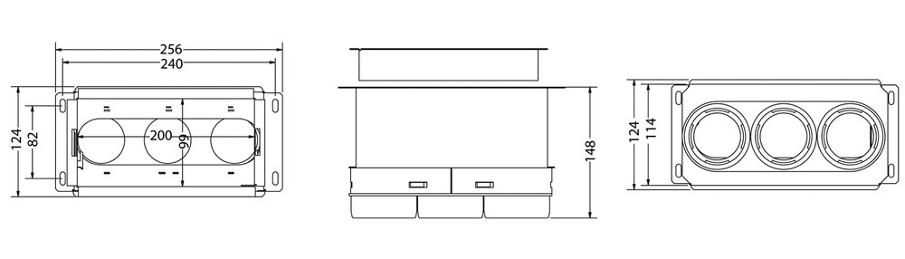 airleben Uniflexplus+ Wandanschlusskasten AK0-W-G200 mit waagrechten KWL-Rohranschlüssen 3 x NW 63mm