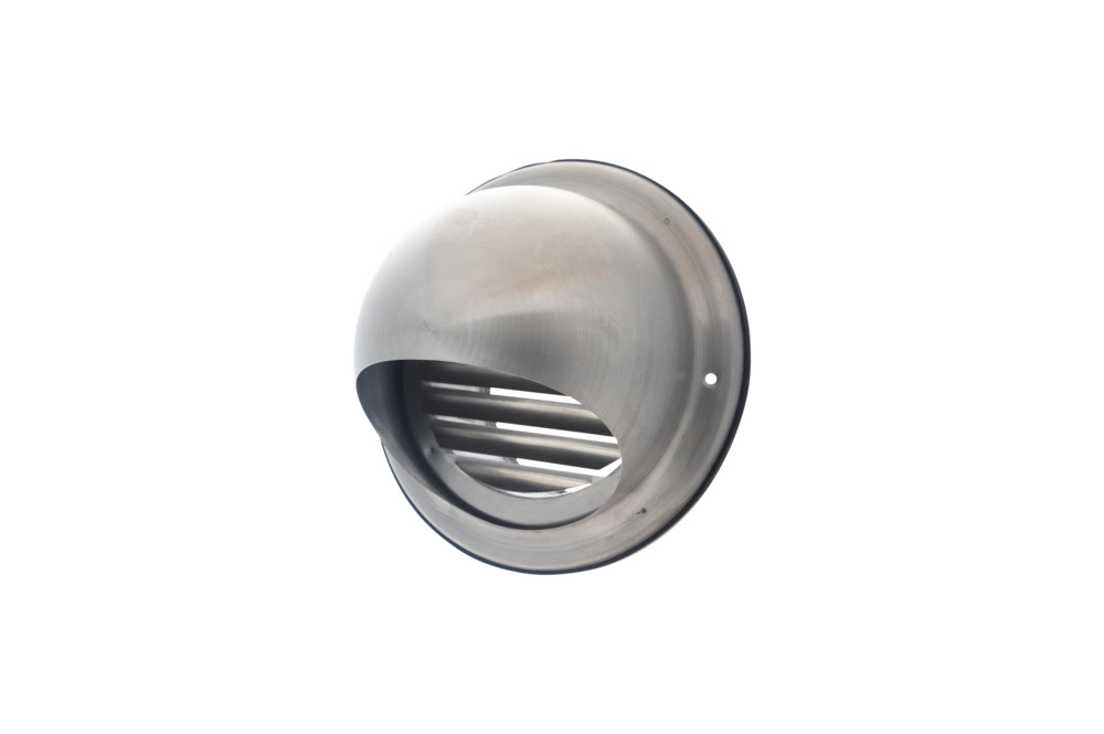 airleben runde Edelstahl Wetterschutzhaube NW 100 mit Luftleitlamellen und Insektenschutzgitter