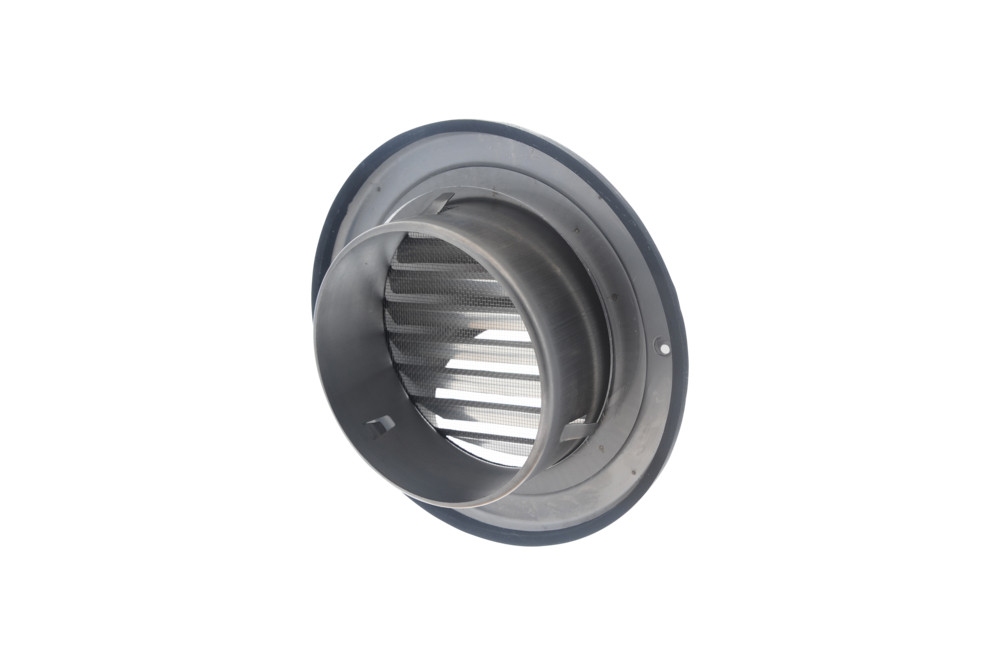 airleben runde Edelstahl Wetterschutzhaube NW 150 mit Luftleitlamellen und Insektenschutzgitter