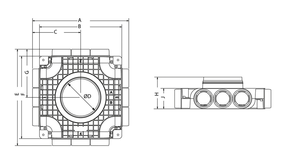 airleben Uniflexplus+ Kunststoff-Luftverteilkasten VKF NW 160, Größe S, KWL-Rohranschlüsse 12 x NW 63mm