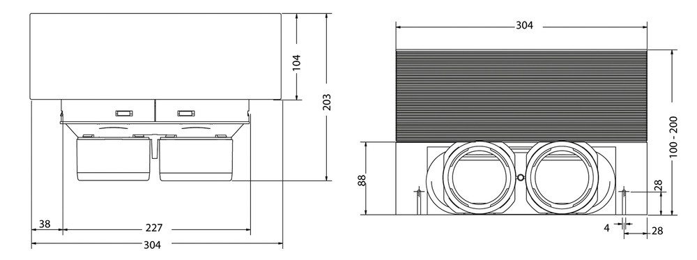 airleben Uniflexplus+ Bodenanschlusskasten 90°AK90-BG300 mit abgewinkeltem KWL-Rohranschluss 2 x NW 75