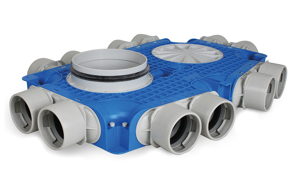 airleben Uniflexplus+ Kunststoff-Luftverteilkasten VKF NW 180, Größe L, KWL-Rohranschlüsse 12 x NW 75mm